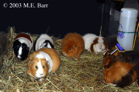 Over the past three years, many changes have happened to our cavy family. Currently there are seven of us. Back row: Treasure (3), Mikki (2 3/4), Samantha (Sammie, 2 1/4), and Viola (5 1/2). Front row: Pralines and Cream (4 1/2) and Kristine (Kristie, 1 3/4). Not pictured: Glorie.