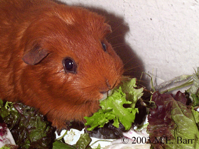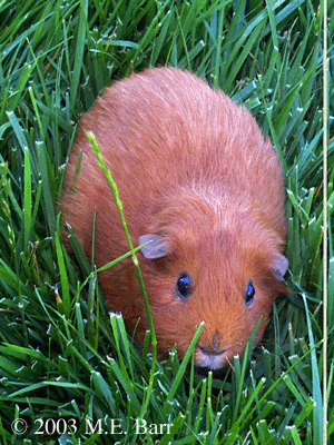 On June 16, 2001, a 389 gram red teddy captured our hearts. We also thought Viola would enjoy having another teddy in the house. Since she is the same color as my first guinea pig, Sammy, we named her Samantha. She is a very curious little fuzzball and enjoys exploring anything new (click on picture on the left).